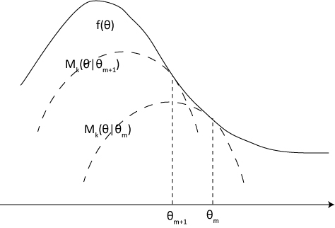 以Minorize-Maximization为例, 使目标函数$f(\theta)$最大化。